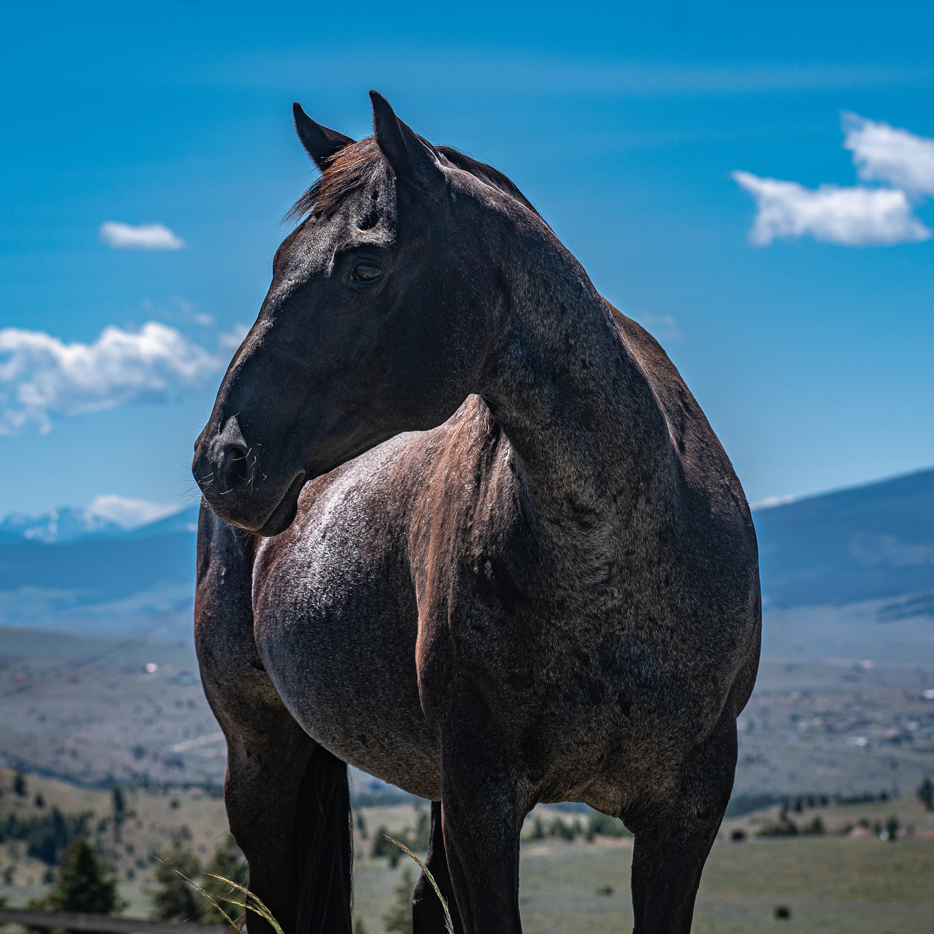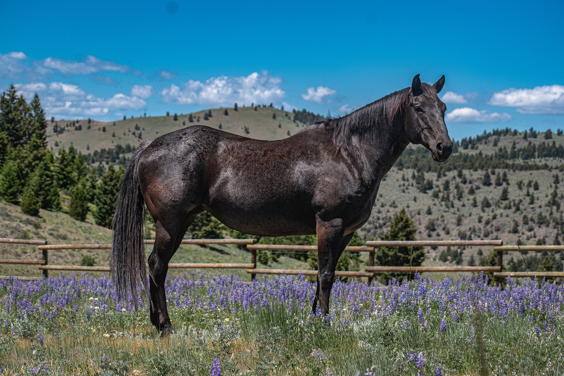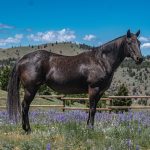 A true-blue roan with a strong back and good feet. She is a young mare with an easy-going attitude and a bright future ahead of her.  Velvet passes on her affectionate disposition to her foals. Look for her foal in 2022!